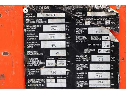 Snorkel - S2646E - Platformă aeriană, 2015, înălțime de lucru 9,9M