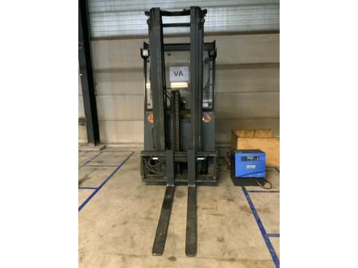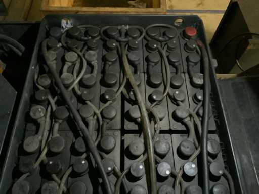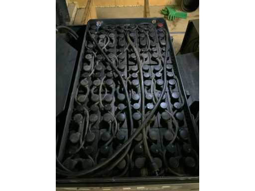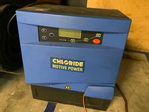Bateria stivuitorului este descărcată. Cu încărcător cu stivuitor Chloride Motive Power.