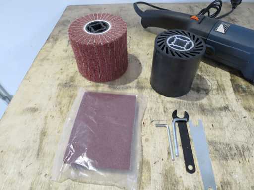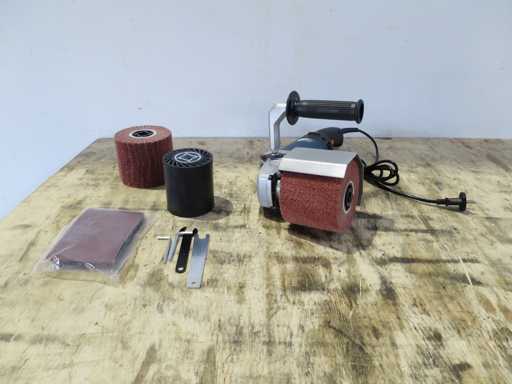 Satin finishing machine with accessories.