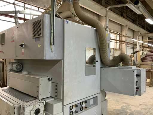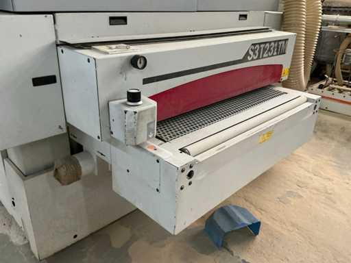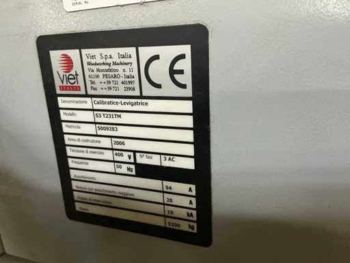 Observații / echipamente suplimentare: Mașină industrială de calibrare și șlefuire cu bandă largă Viet S3 T231TM, concepută pentru calibrarea precisă a grosimii și finisarea fină a suprafețelor lemnului și panourilor. Echipat cu trei unități de șlefuire, viteză de avans reglabilă, afișaj electronic și oscilație pneumatică a curelei. Mașină de înaltă productivitate potrivită pentru funcționarea continuă în linii de fabricare a mobilierului sau a ușilor.