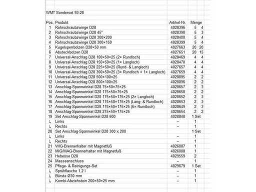 WMM SPECIAL SET 93 / 28 Welding Table Accessories