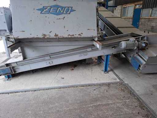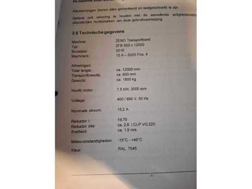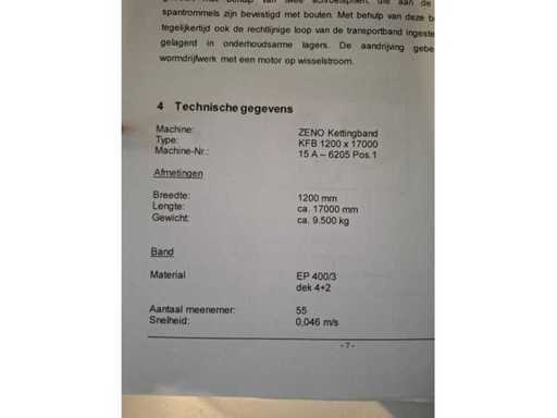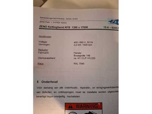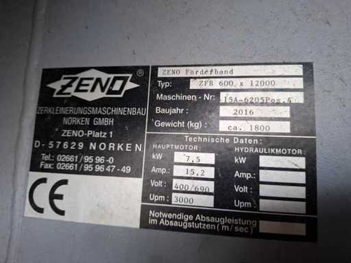 Zeno - ZTLL 1800x1600 - Tocător echipat cu transportor cu lanț KFB 1200x17000 mm, bandă transportoare ZFB 600x4000mm, bandă transportoare ZFB 600x12000mm, cutie de control, ore de citire: 537. Fără bandă magnetică (lotul 52) Nu există stivuitor disponibil.